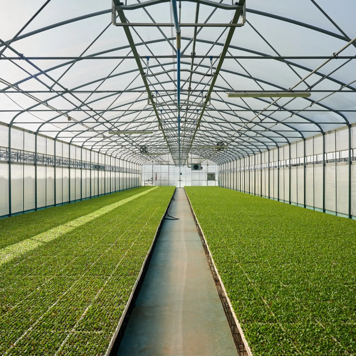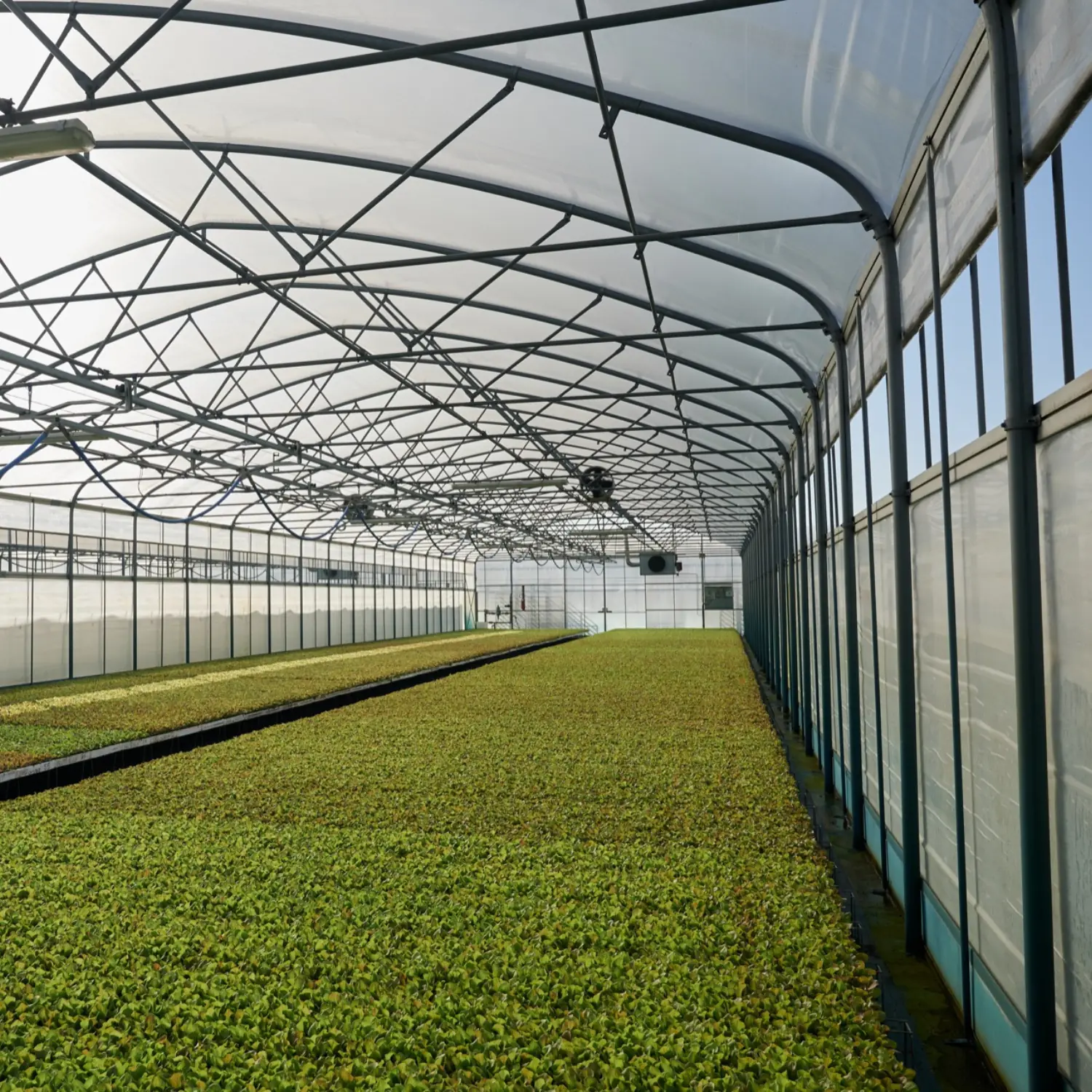 Detta industriellt växthus finns med olika alternativ för täckning, gavlar, dörrar och ventilation, inklusive automatiserade klimatlösningar.